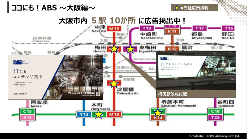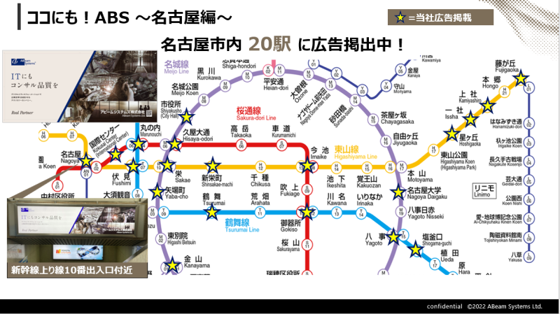 実はABSは名古屋市内、大阪市内のあちこちにABSの広告があります!