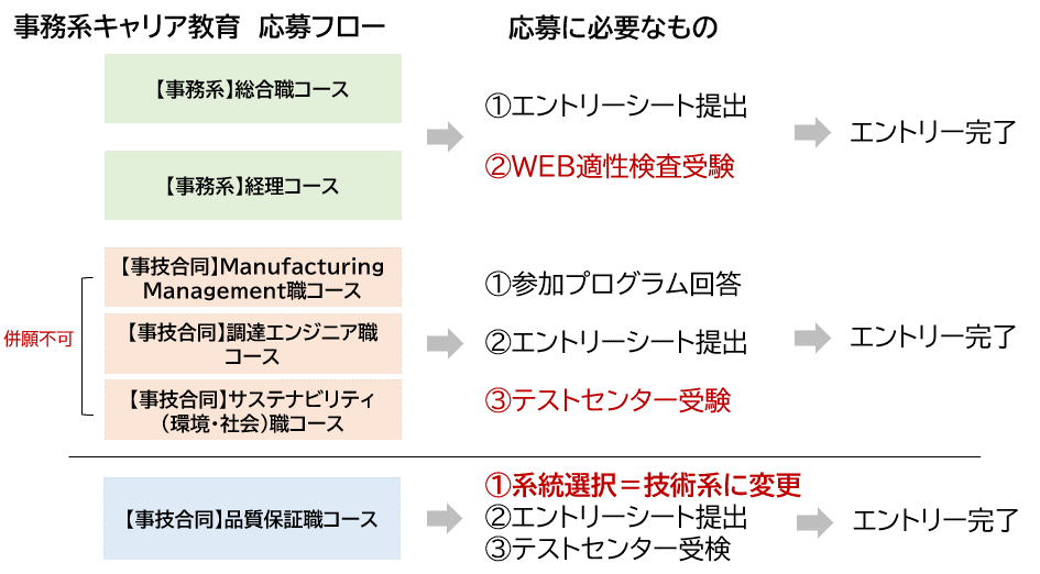 技術系に変更した場合、総合職コース・経理コースとの併願は不可となりますので、ご注意ください。