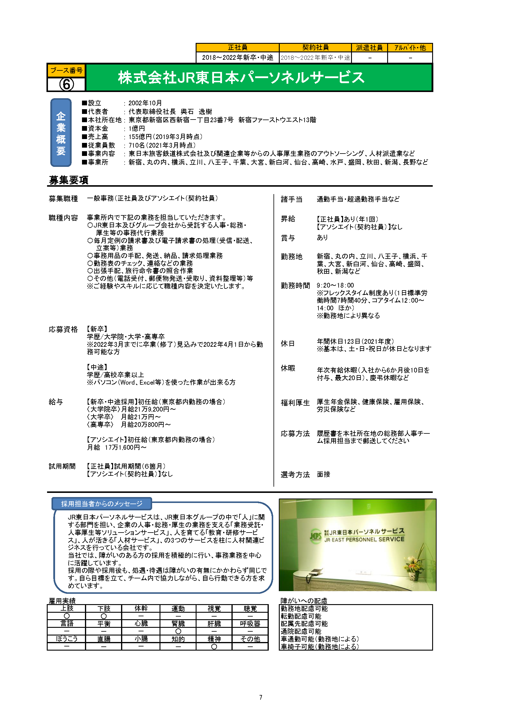 JR東日本パーソネルサービス募集要項(障がいのある方向け)