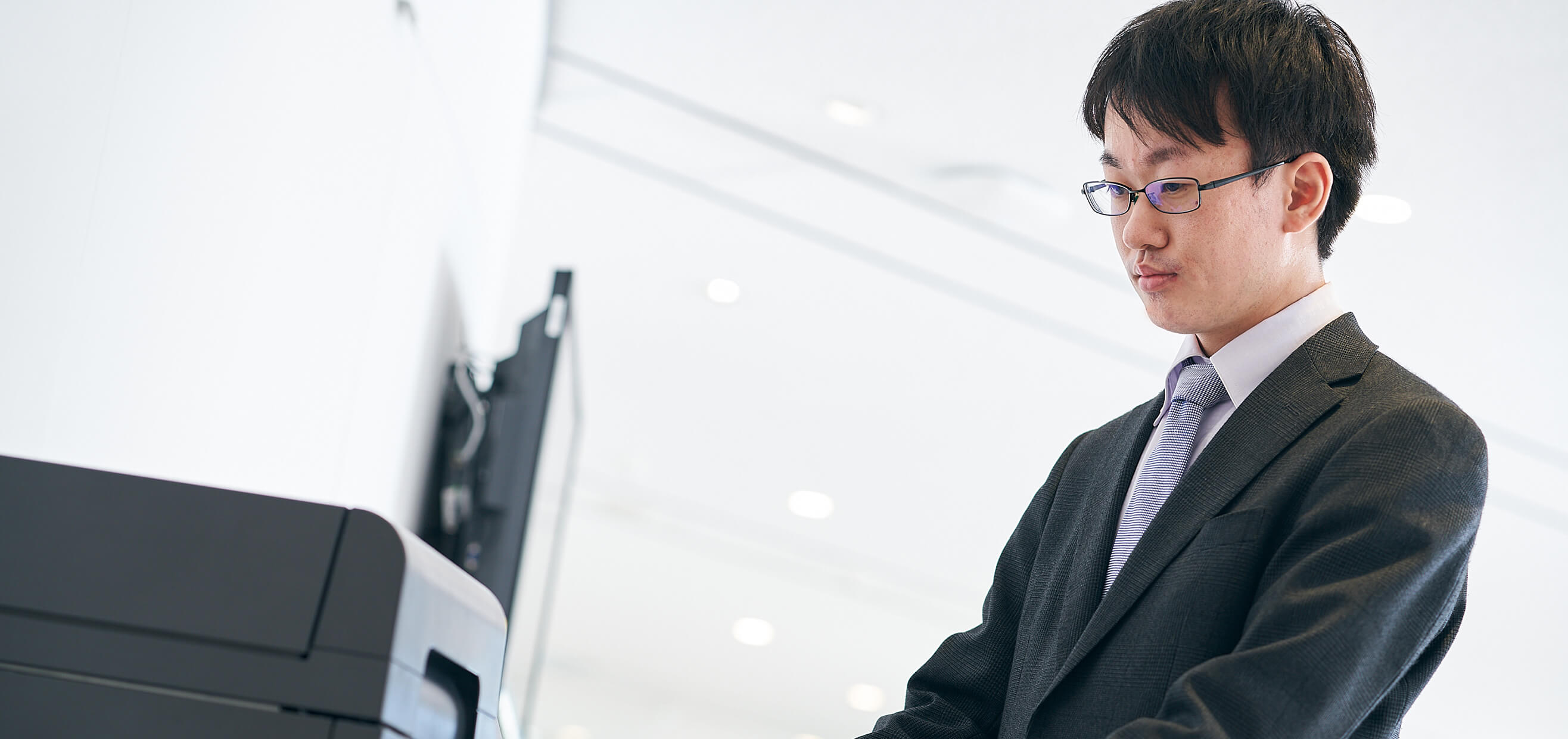最近は、複合機ソリューションの他にも業務効率化や業務自動化に関するソリューションを担当しています。例えば、紙文書を効率的に電子化するための電子化ソリューションや、社内のシステム間でデータを連携させるデータ連携ソリューション、決まった業務フローをロボットが代わりに行うRPAソリューションなどを担当しています。