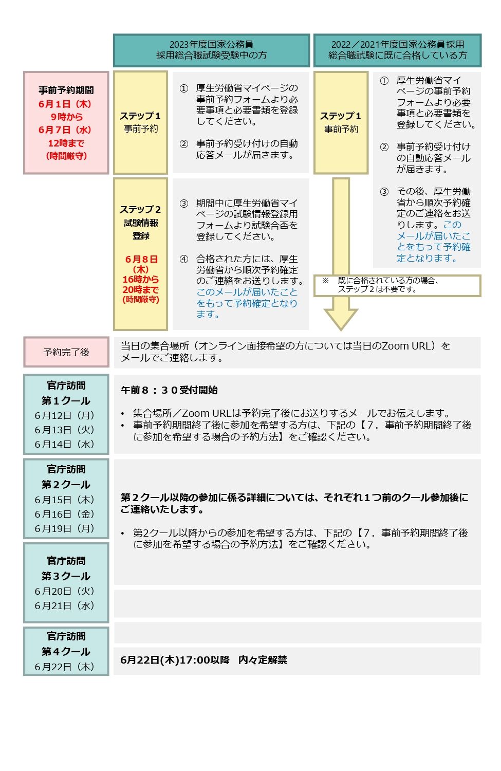 1. 概要 厚生労働省(総合職事務系)2023年度官庁訪問の全体スケジュールは下記のとおりです。