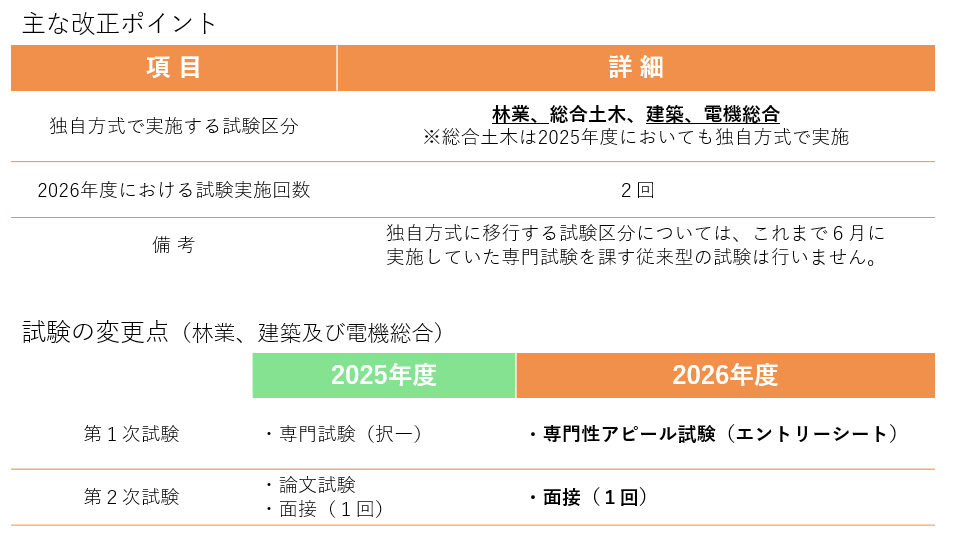 2026年度に実施する採用試験における主な改正点は以下のとおりです。