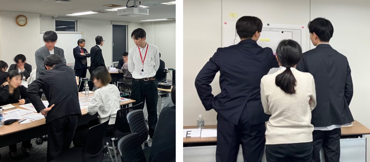 のびのびとした雰囲気で、アイデアを交換し合いながらグループ話し合いが大変盛り上がっていました。若手の社員とも気軽に交流を行い、気になることなど何でも聞いていました。