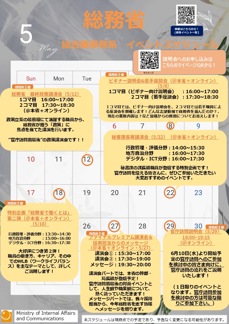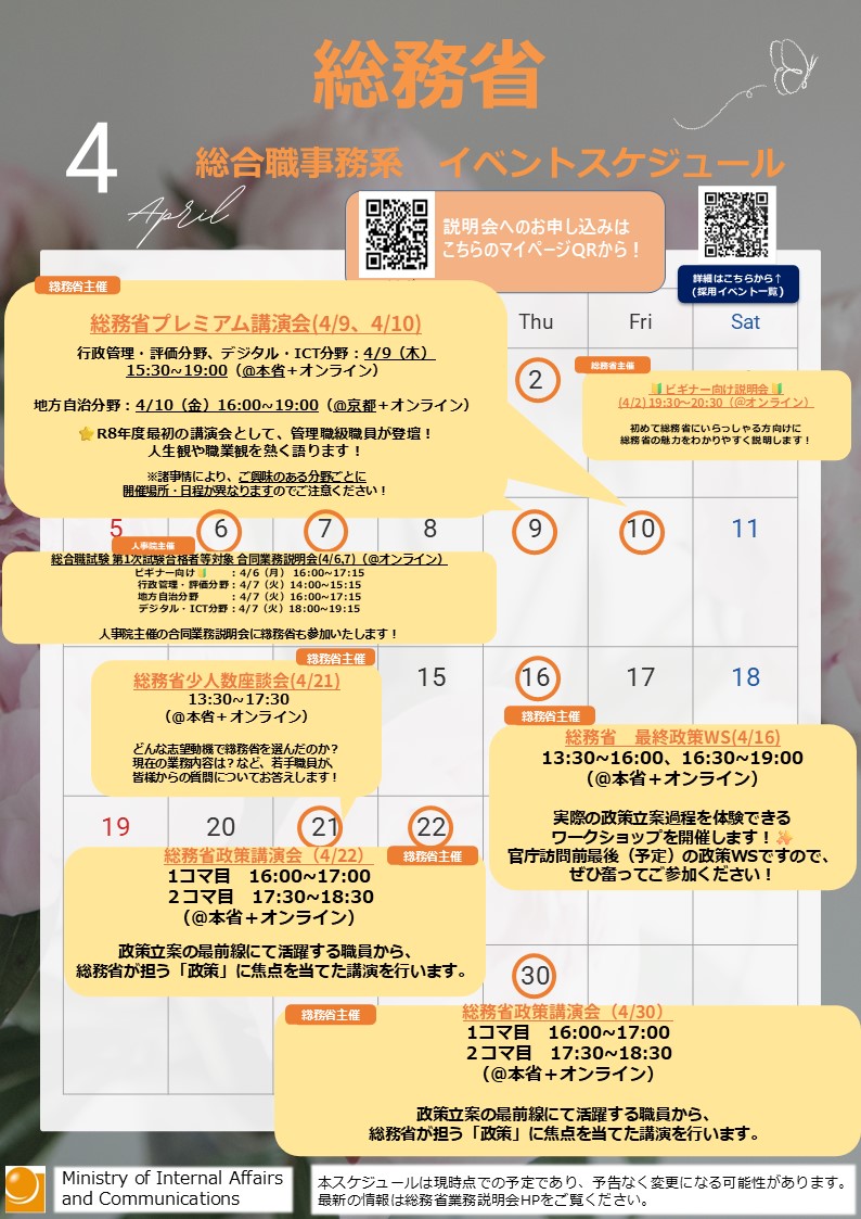 総務省(総合職事務系)今後のイベント情報